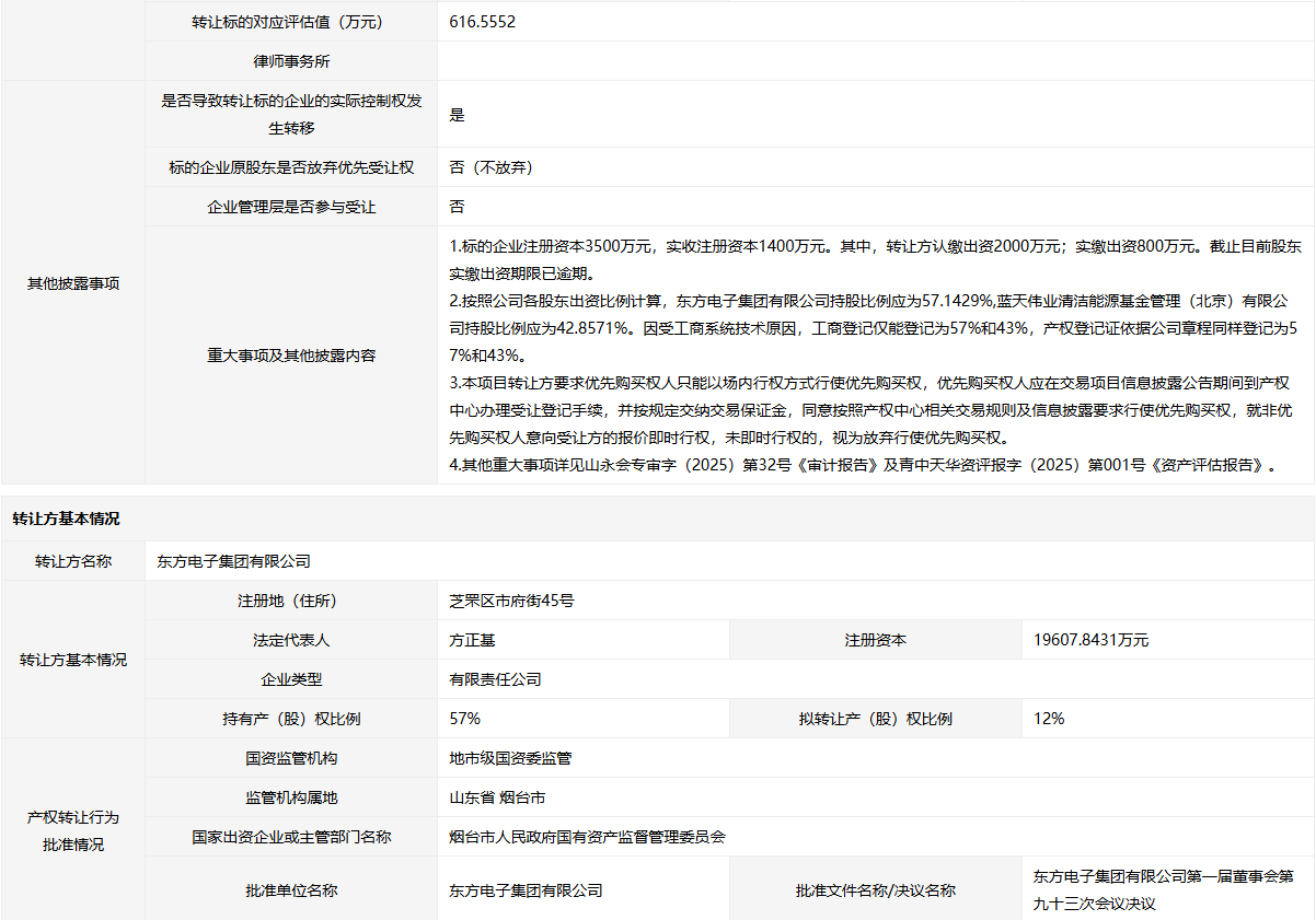 轉(zhuǎn)讓方:東方電子集團(tuán)有限公司