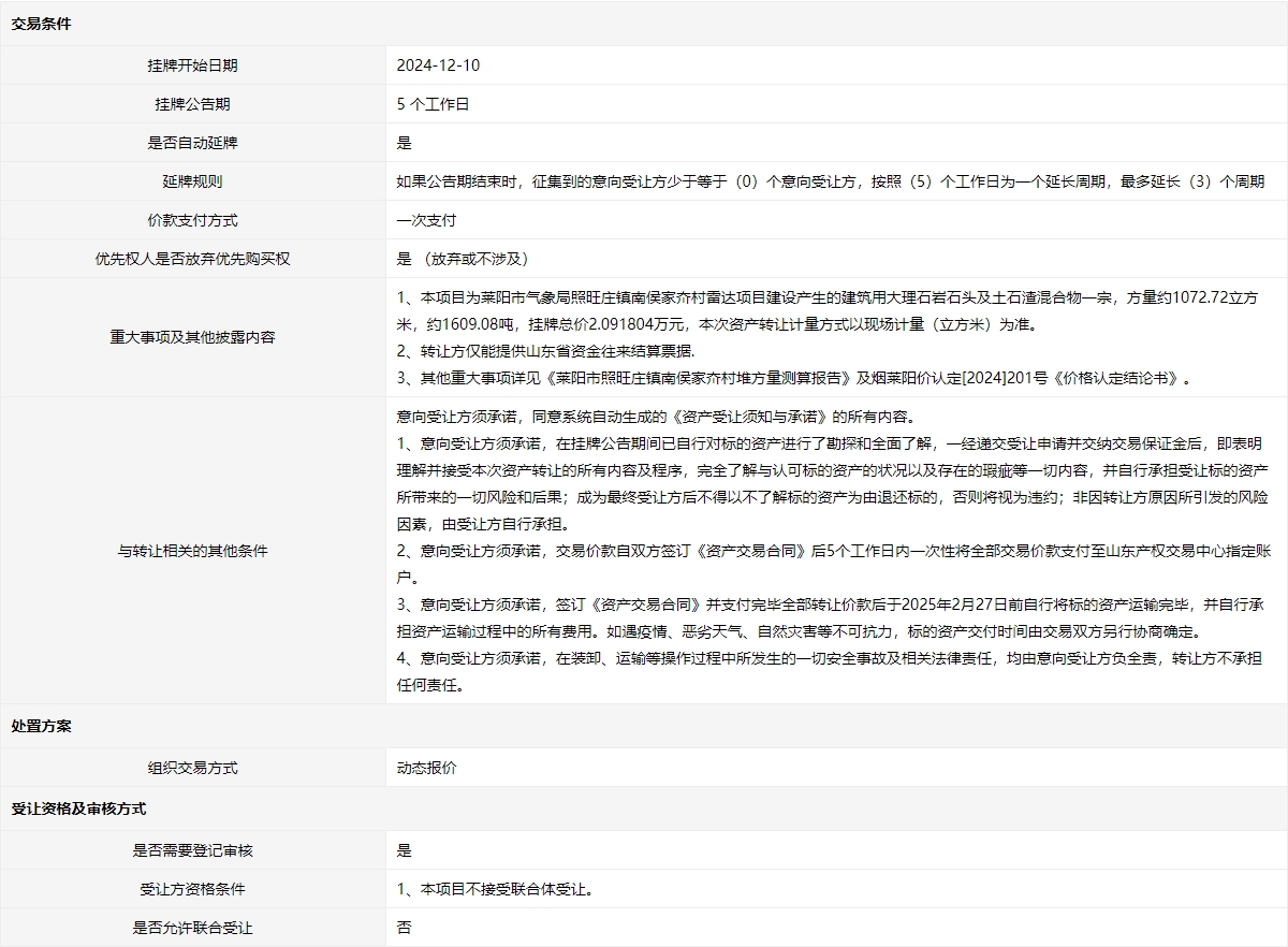 - 掛牌起止日期:2024年12月10日至2024年12月23日