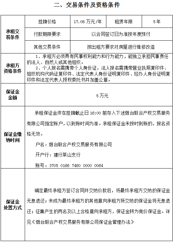 煙臺市南大街267號一樓東側門頭房招租公告