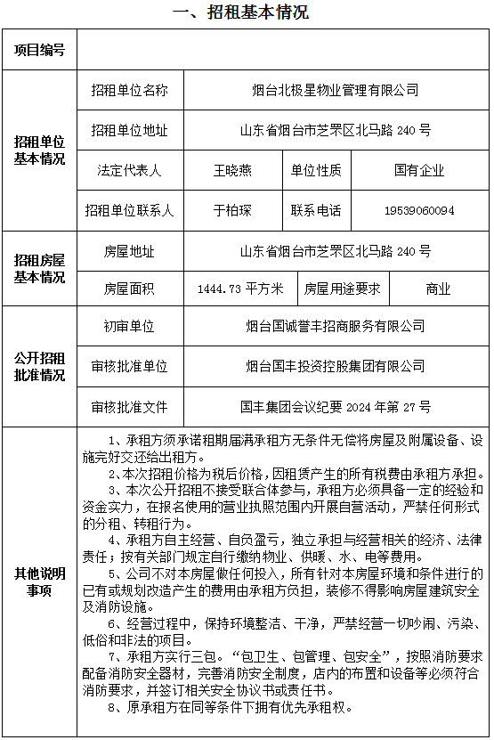 煙臺市南大街267號一樓東側門頭房招租公告