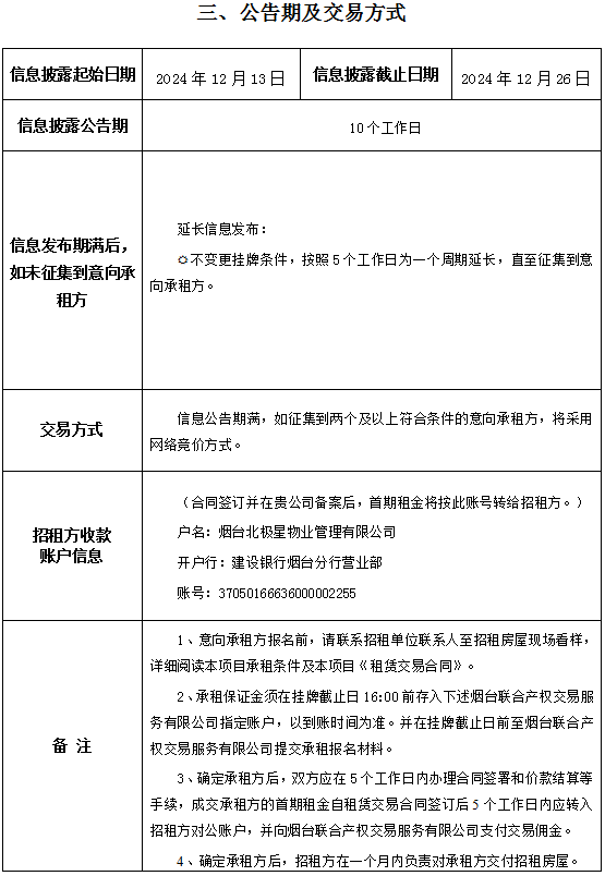 掛牌起止日期:2024年12月13日至2024年12月26日